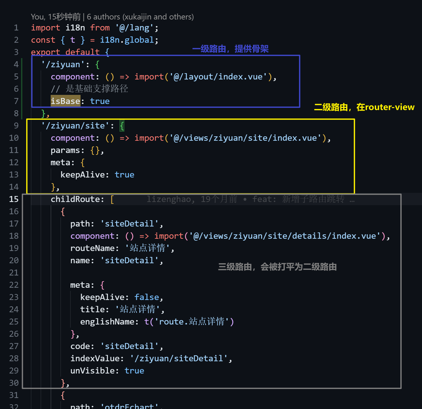 export default function useRouteCache() {const route = useRoute();function gatherCaches() {watch(() => route.path, storeRouteCaches, {immediate: true});}// 对当前路由进行缓存function storeRouteCaches() {// route.matched会包含从根路由到当前路由的所有匹配的路由记// 例如:[// { path: '/user', component: UserLayout, meta: { keepAlive: true } },// { path: '/user/profile', component: ProfileLayout, meta: { keepAlive: false } },// { path: '/user/profile/settings', component: SettingsPage, meta: { keepAlive: true }}]route.matched.forEach(routeMatch => {const componentDef: any = routeMatch.components?.default;const componentName = componentDef?.name || componentDef?.__name;if (ignoreGathers.includes(componentName)) return;// 配置了meta.keepAlive的路由组件添加到缓存if (routeMatch.meta.keepAlive) {if (!componentName) {// eslint-disable-next-line no-consoleconsole.warn(`${routeMatch.path} 路由的组件名称name为空`);return;}caches.value.push(componentName as string);}})}}// APP.vue 一级路由是router-view