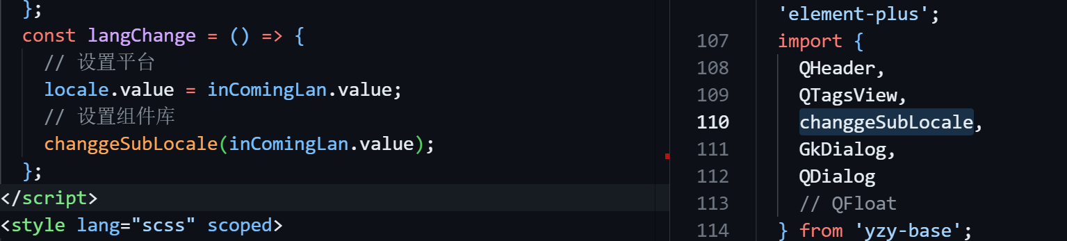 平台的语言包状态生效后,调用组件库里提供的方法切换语言包
