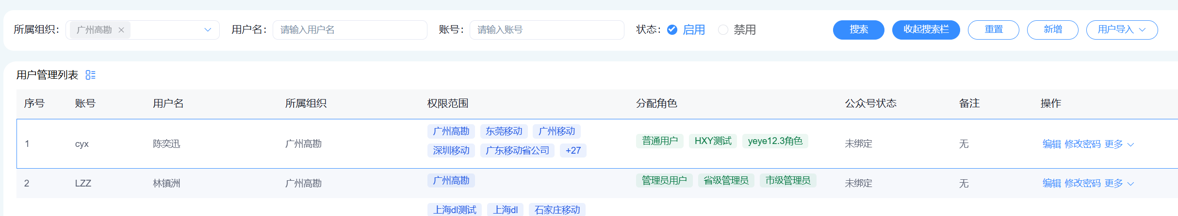 - 用户的查看范围不止它的所属组织(可以查看多个组织)。