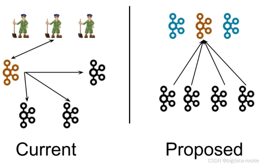 - 并且 Zookeeper 自身带来的运维复杂性和产品稳定性,也同样将复杂度和风险负担传递到 Kafka 运维人员;