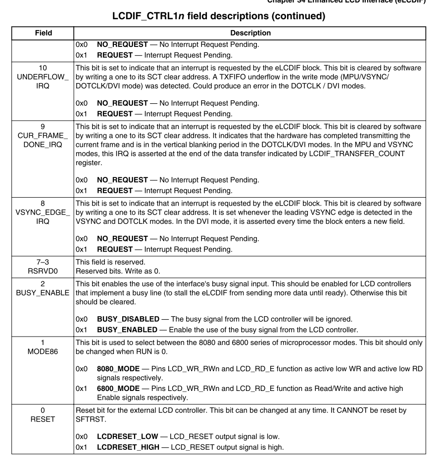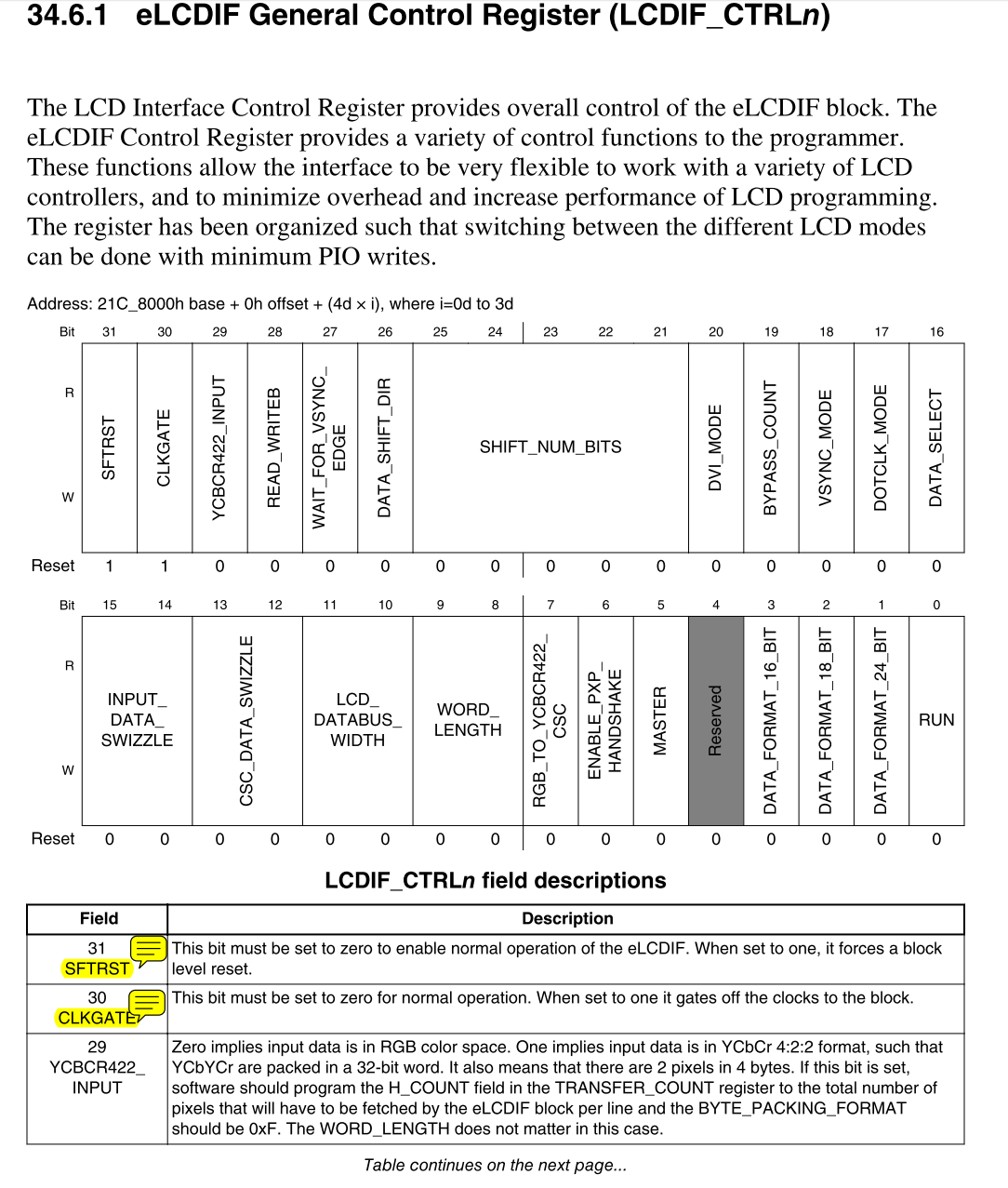{LCDIF->CTRL |= (1 << 31);delayms(20);LCDIF->CTRL &= ~(3 << 30);
