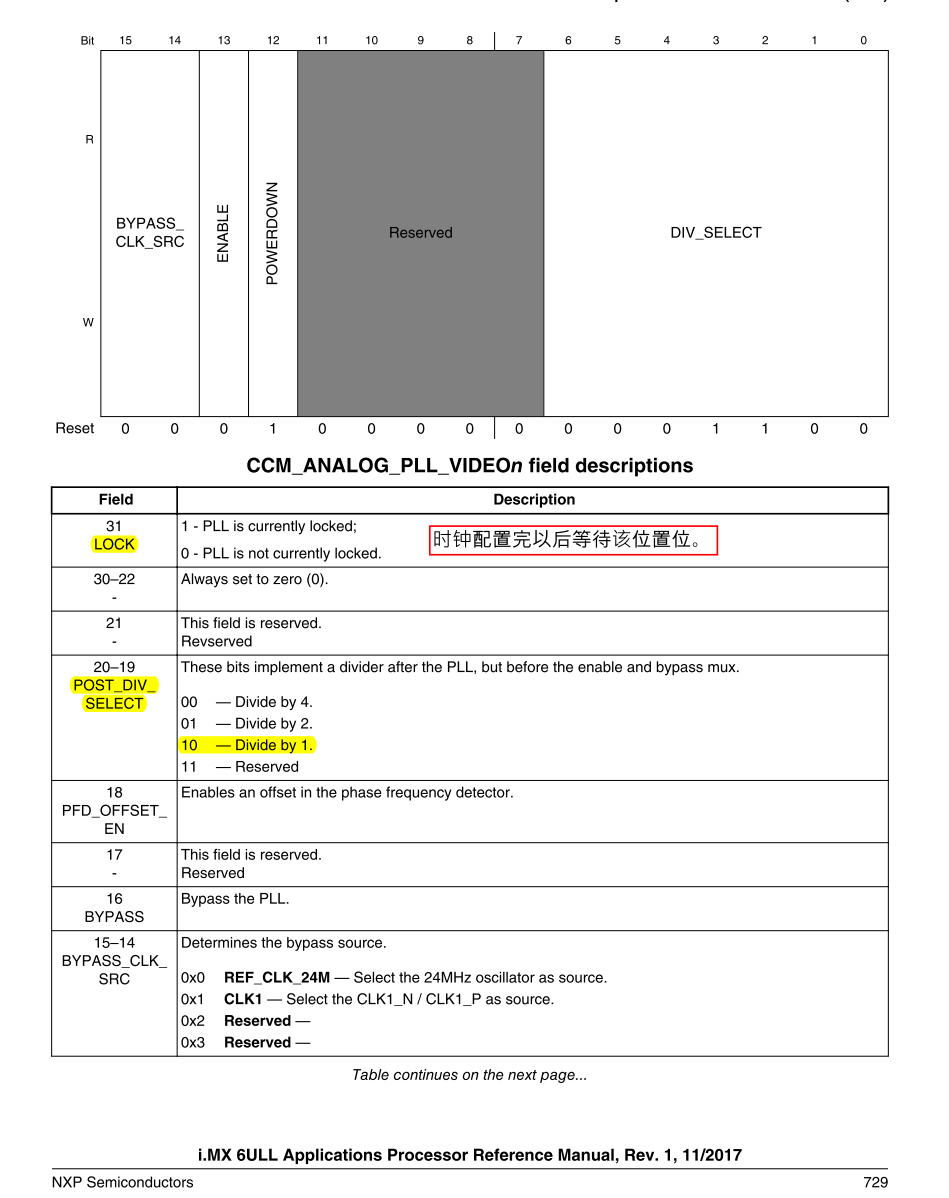 2) 在 CCM_ANALOG_PLL_VIDEO 中: