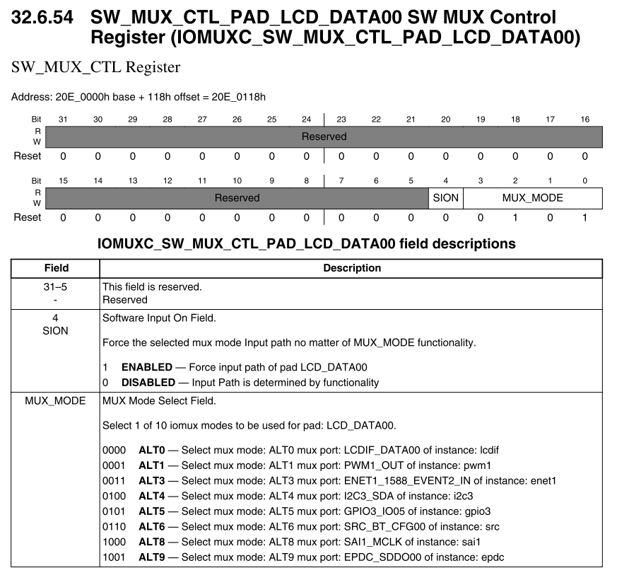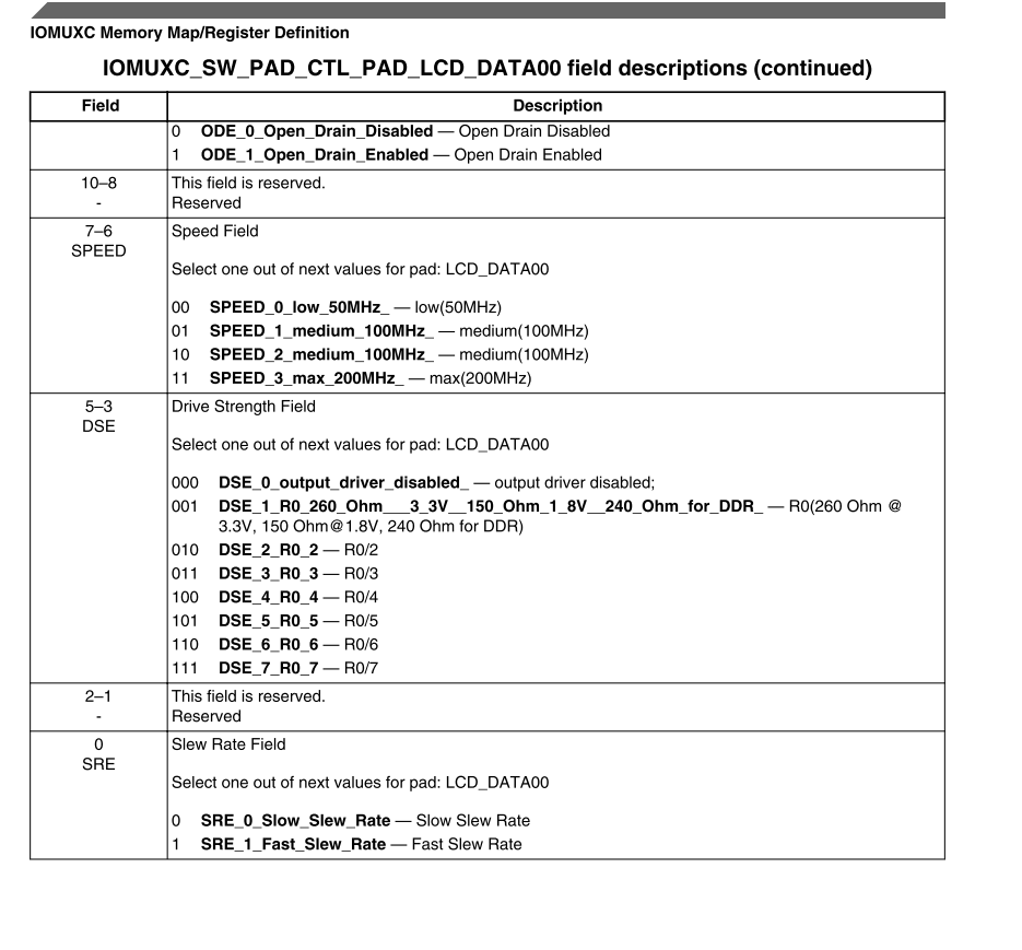 {//1、引脚初始化IOMUXC_SetPinMux(IOMUXC_LCD_DATA00_LCDIF_DATA00, 0);IOMUXC_SetPinMux(IOMUXC_LCD_DATA01_LCDIF_DATA01, 0);IOMUXC_SetPinMux(IOMUXC_LCD_DATA02_LCDIF_DATA02, 0);IOMUXC_SetPinMux(IOMUXC_LCD_DATA03_LCDIF_DATA03, 0);IOMUXC_SetPinMux(IOMUXC_LCD_DATA04_LCDIF_DATA04, 0);IOMUXC_SetPinMux(IOMUXC_LCD_DATA05_LCDIF_DATA05, 0);IOMUXC_SetPinMux(IOMUXC_LCD_DATA06_LCDIF_DATA06, 0);IOMUXC_SetPinMux(IOMUXC_LCD_DATA07_LCDIF_DATA07, 0);IOMUXC_SetPinMux(IOMUXC_LCD_DATA08_LCDIF_DATA08, 0);IOMUXC_SetPinMux(IOMUXC_LCD_DATA09_LCDIF_DATA09, 0);IOMUXC_SetPinMux(IOMUXC_LCD_DATA10_LCDIF_DATA10, 0);IOMUXC_SetPinMux(IOMUXC_LCD_DATA11_LCDIF_DATA11, 0);IOMUXC_SetPinMux(IOMUXC_LCD_DATA12_LCDIF_DATA12, 0);IOMUXC_SetPinMux(IOMUXC_LCD_DATA13_LCDIF_DATA13, 0);IOMUXC_SetPinMux(IOMUXC_LCD_DATA14_LCDIF_DATA14, 0);IOMUXC_SetPinMux(IOMUXC_LCD_DATA15_LCDIF_DATA15, 0);IOMUXC_SetPinMux(IOMUXC_LCD_DATA16_LCDIF_DATA16, 0);IOMUXC_SetPinMux(IOMUXC_LCD_DATA17_LCDIF_DATA17, 0);IOMUXC_SetPinMux(IOMUXC_LCD_DATA18_LCDIF_DATA18, 0);IOMUXC_SetPinMux(IOMUXC_LCD_DATA19_LCDIF_DATA19, 0);IOMUXC_SetPinMux(IOMUXC_LCD_DATA20_LCDIF_DATA20, 0);IOMUXC_SetPinMux(IOMUXC_LCD_DATA21_LCDIF_DATA21, 0);IOMUXC_SetPinMux(IOMUXC_LCD_DATA22_LCDIF_DATA22, 0);IOMUXC_SetPinMux(IOMUXC_LCD_DATA23_LCDIF_DATA23, 0);IOMUXC_SetPinMux(IOMUXC_LCD_CLK_LCDIF_CLK, 0);IOMUXC_SetPinMux(IOMUXC_LCD_HSYNC_LCDIF_HSYNC, 0);IOMUXC_SetPinMux(IOMUXC_LCD_VSYNC_LCDIF_VSYNC, 0);IOMUXC_SetPinMux(IOMUXC_LCD_ENABLE_LCDIF_ENABLE, 0);IOMUXC_SetPinMux(IOMUXC_GPIO1_IO08_GPIO1_IO08, 0);IOMUXC_SetPinConfig(IOMUXC_LCD_DATA00_LCDIF_DATA00, 0xB9);IOMUXC_SetPinConfig(IOMUXC_LCD_DATA01_LCDIF_DATA01, 0xB9);IOMUXC_SetPinConfig(IOMUXC_LCD_DATA02_LCDIF_DATA02, 0xB9);IOMUXC_SetPinConfig(IOMUXC_LCD_DATA03_LCDIF_DATA03, 0xB9);IOMUXC_SetPinConfig(IOMUXC_LCD_DATA04_LCDIF_DATA04, 0xB9);IOMUXC_SetPinConfig(IOMUXC_LCD_DATA05_LCDIF_DATA05, 0xB9);IOMUXC_SetPinConfig(IOMUXC_LCD_DATA06_LCDIF_DATA06, 0xB9);IOMUXC_SetPinConfig(IOMUXC_LCD_DATA07_LCDIF_DATA07, 0xB9);IOMUXC_SetPinConfig(IOMUXC_LCD_DATA08_LCDIF_DATA08, 0xB9);IOMUXC_SetPinConfig(IOMUXC_LCD_DATA09_LCDIF_DATA09, 0xB9);IOMUXC_SetPinConfig(IOMUXC_LCD_DATA10_LCDIF_DATA10, 0xB9);IOMUXC_SetPinConfig(IOMUXC_LCD_DATA11_LCDIF_DATA11, 0xB9);IOMUXC_SetPinConfig(IOMUXC_LCD_DATA12_LCDIF_DATA12, 0xB9);IOMUXC_SetPinConfig(IOMUXC_LCD_DATA13_LCDIF_DATA13, 0xB9);IOMUXC_SetPinConfig(IOMUXC_LCD_DATA14_LCDIF_DATA14, 0xB9);IOMUXC_SetPinConfig(IOMUXC_LCD_DATA15_LCDIF_DATA15, 0xB9);IOMUXC_SetPinConfig(IOMUXC_LCD_DATA16_LCDIF_DATA16, 0xB9);IOMUXC_SetPinConfig(IOMUXC_LCD_DATA17_LCDIF_DATA17, 0xB9);IOMUXC_SetPinConfig(IOMUXC_LCD_DATA18_LCDIF_DATA18, 0xB9);IOMUXC_SetPinConfig(IOMUXC_LCD_DATA19_LCDIF_DATA19, 0xB9);IOMUXC_SetPinConfig(IOMUXC_LCD_DATA20_LCDIF_DATA20, 0xB9);IOMUXC_SetPinConfig(IOMUXC_LCD_DATA21_LCDIF_DATA21, 0xB9);IOMUXC_SetPinConfig(IOMUXC_LCD_DATA22_LCDIF_DATA22, 0xB9);IOMUXC_SetPinConfig(IOMUXC_LCD_DATA23_LCDIF_DATA23, 0xB9);IOMUXC_SetPinConfig(IOMUXC_LCD_CLK_LCDIF_CLK, 0xB9);IOMUXC_SetPinConfig(IOMUXC_LCD_HSYNC_LCDIF_HSYNC, 0xB9);IOMUXC_SetPinConfig(IOMUXC_LCD_VSYNC_LCDIF_VSYNC, 0xB9);IOMUXC_SetPinConfig(IOMUXC_LCD_ENABLE_LCDIF_ENABLE, 0xB9);IOMUXC_SetPinConfig(IOMUXC_GPIO1_IO08_GPIO1_IO08, 0xB9);struct GPIO_Type_t t = {.direction = gpio_output,.defalut_value = 1};init_gpio(GPIO1, 8, &t);write_gpio(GPIO1, 8, 1);