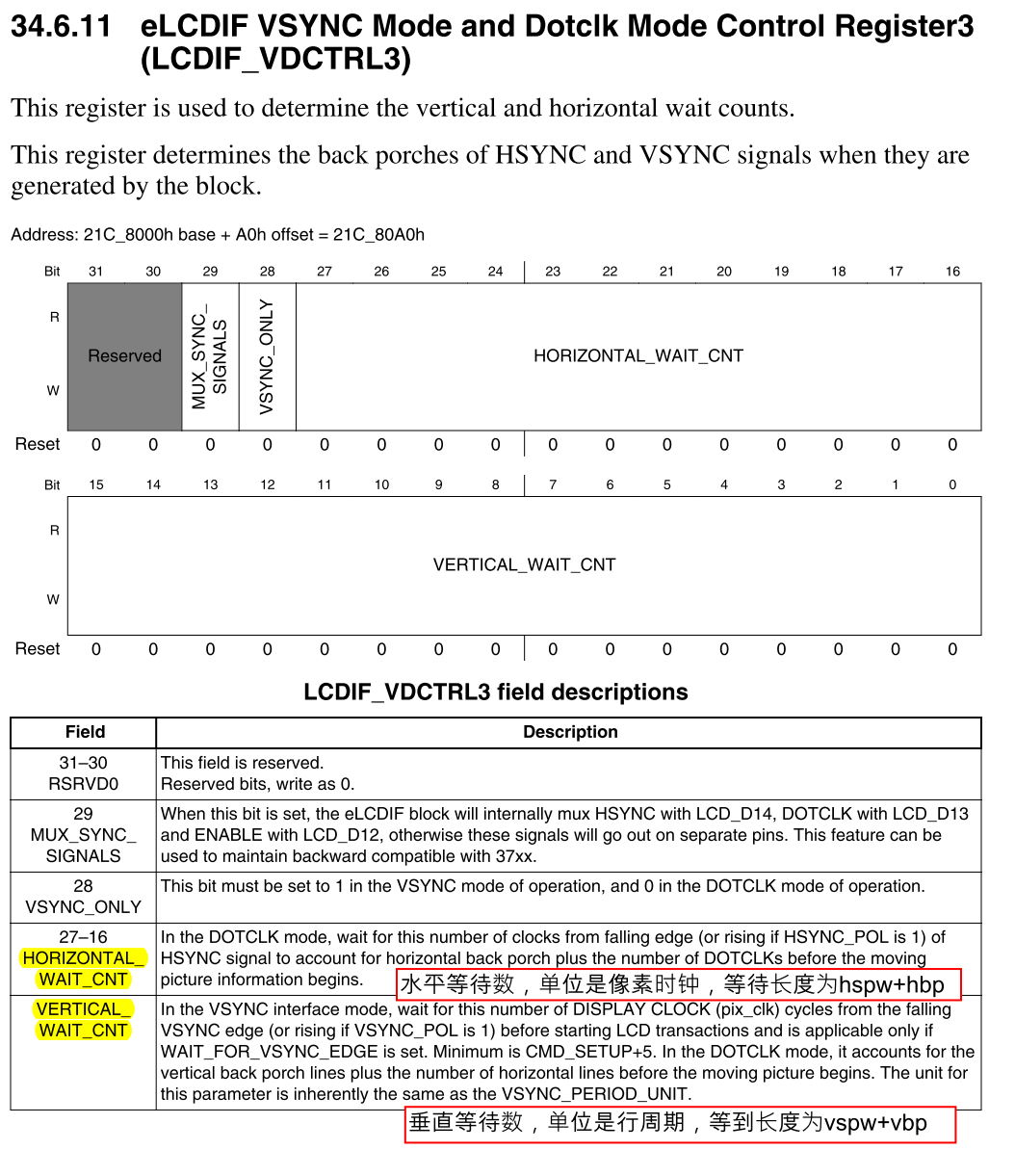 ④ HOZVAL:有些地方叫做 thd,显示一行数据所需的时间,假如屏幕分辨率为 1024*600,那么 HOZVAL 就是 1024,单位为 CLK;