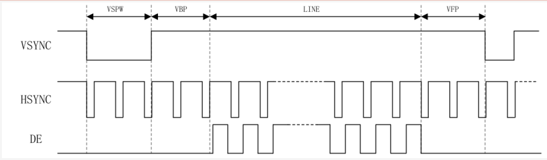 ⑤ VFP:有些地方叫做 tvf,前面已经讲过了,术语叫做帧同步信号前肩,单位为 1 行的时间。