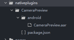 修改package.json文件使用原生开发的CameraPreview.aar插件,内容如下: