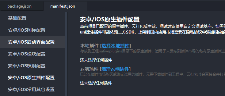 在manifest.json文件的“App原生插件配置”项下点击“选择本地插件”