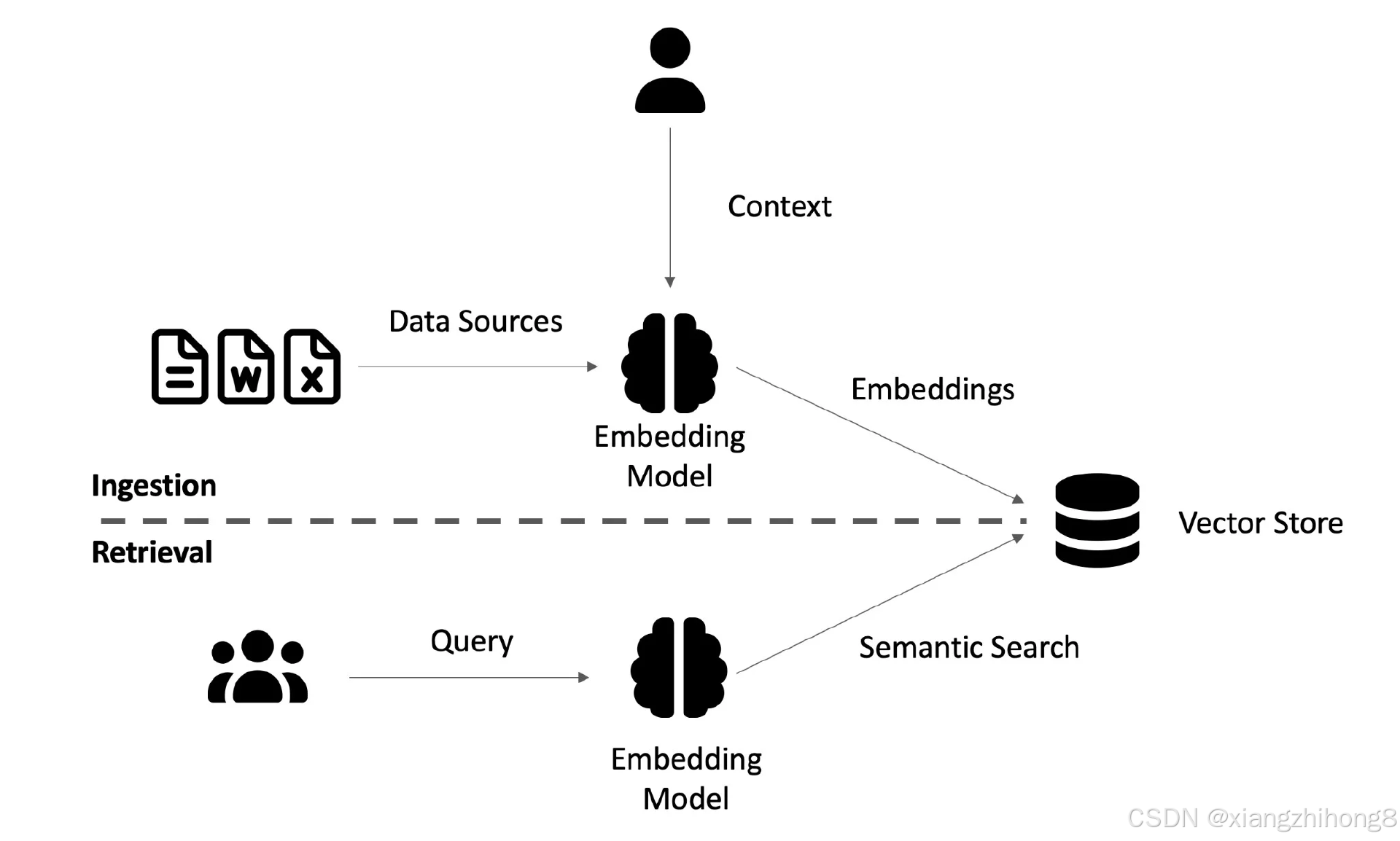 该系统由两个主要阶段组成:摄取和嵌入阶段查询和检索阶段