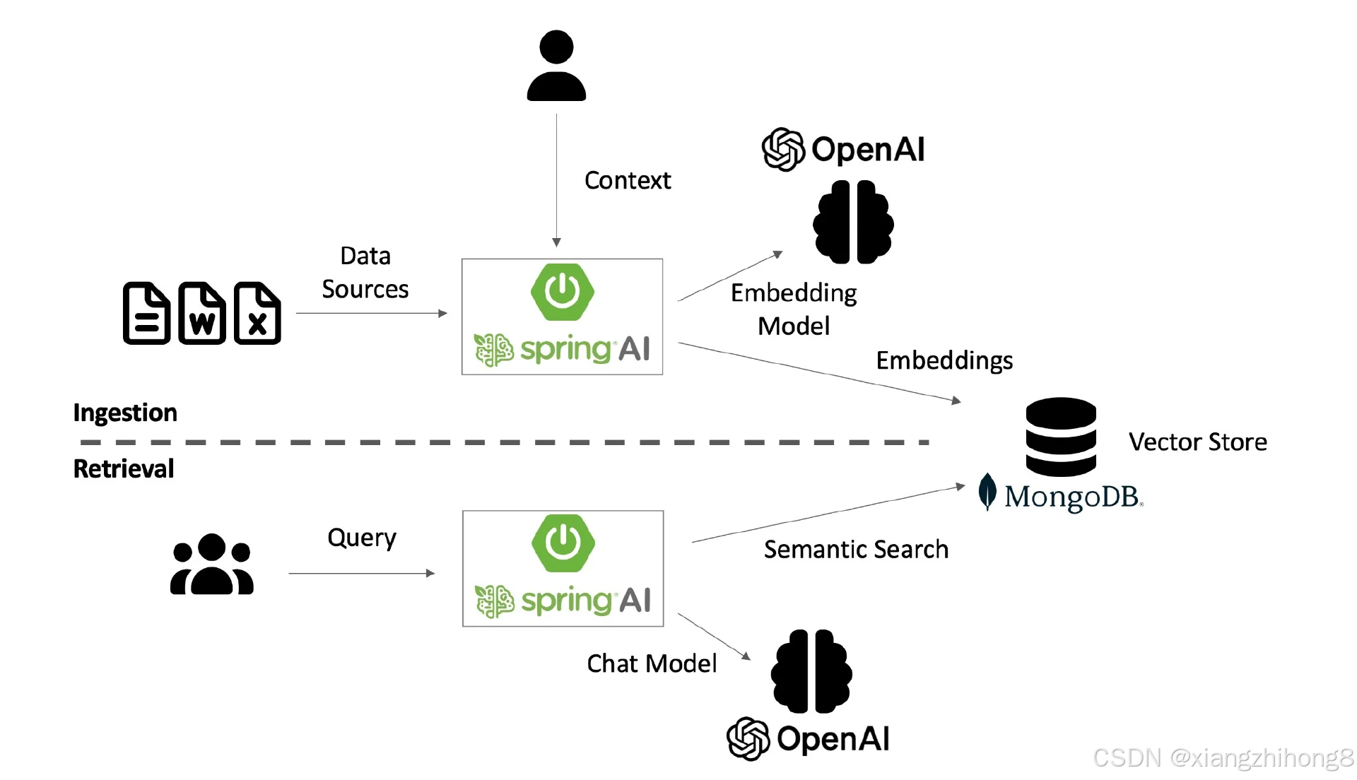 使用 Spring Boot、Spring AI、MongoDB 和 OpenAI 模型创建 RAG 管道,突出了如何将这些技术自然地集成到生态系统和企业架构中。