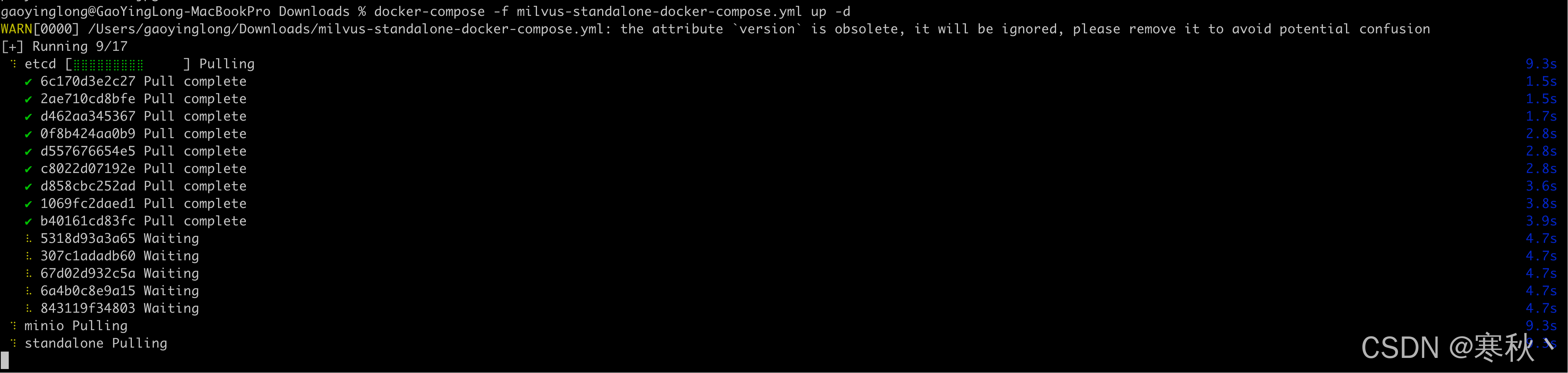 docker-compose -f milvus-standalone-docker-compose.yml up -d