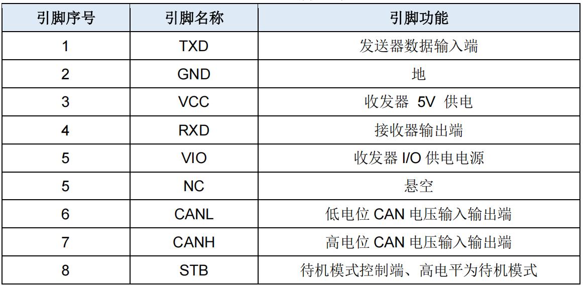 ASM1042A系列芯片的引脚包括TXD(发送器数据输入端)、RXD(接收器输出端)、VCC(收发器5V供电)、VIO(收发器I/O供电电源)、CANH和CANL(高/低电位CAN电压输入输出端)、STB(待机模式控制端)等关键引脚。在硬件设计中,需要根据芯片的引脚功能进行合理的布局和连接。