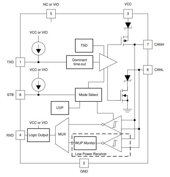 通过AEC-Q100Grade1认证,符合ISO11898-2:2016和ISO11898-5:2007物理层标准,保证了其在汽车电子环境中的可靠性和兼容性。