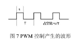 选用的4个无刷电机分别由下位机STM32F407的4个直流电机接口相连接 控制智能采购机器人的运动,由下位机STM32F407输出PWM脉冲控制智能采 购机器人直行和转弯的速度,通过改变PWM方波的占空比调节速度的大小, PWM控制产生的波形如图所示: