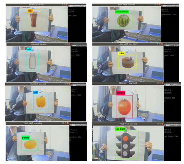 本设计主要针对苹果、香蕉、西瓜、可乐、蛋糕、土豆、彩椒、番茄、 牛奶、红绿灯等图片进行图像采集,根据采集需求通过ROS机器人的USB 相机拍摄图像,由模型所需样本为参照采集约1000张照片。根据本拍摄 到的图片进行筛选重建。本设计中的所有数据均按照YOLO格式进行了详 细的标注处理。为了确保模型训练与评估的准确性和有效性,将数据集的 80%部分划定为训练集,专门用于模型的训练与优化;而剩余的20%部分 则设定为测试集,旨在检验训练后模型的性能和泛化能力。 将所有需要用到的数据都放于darknet的JPGImages 的目录下方便在 后续训练过程中调用。