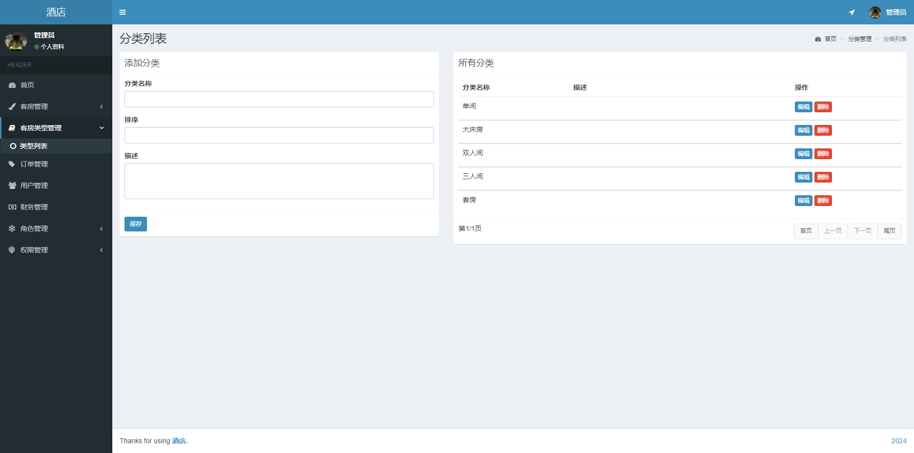 3.客房类型管理:分页查询、新增分类、修改分类、删除分类