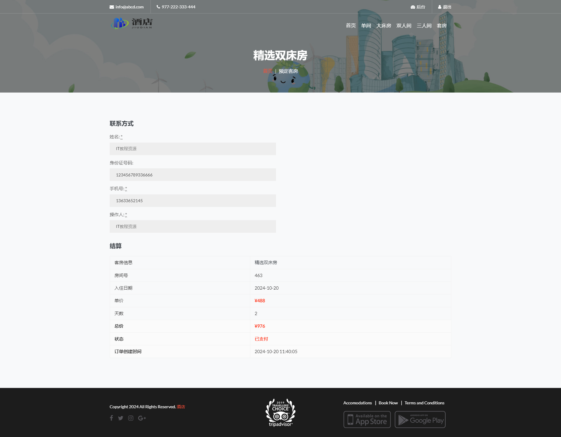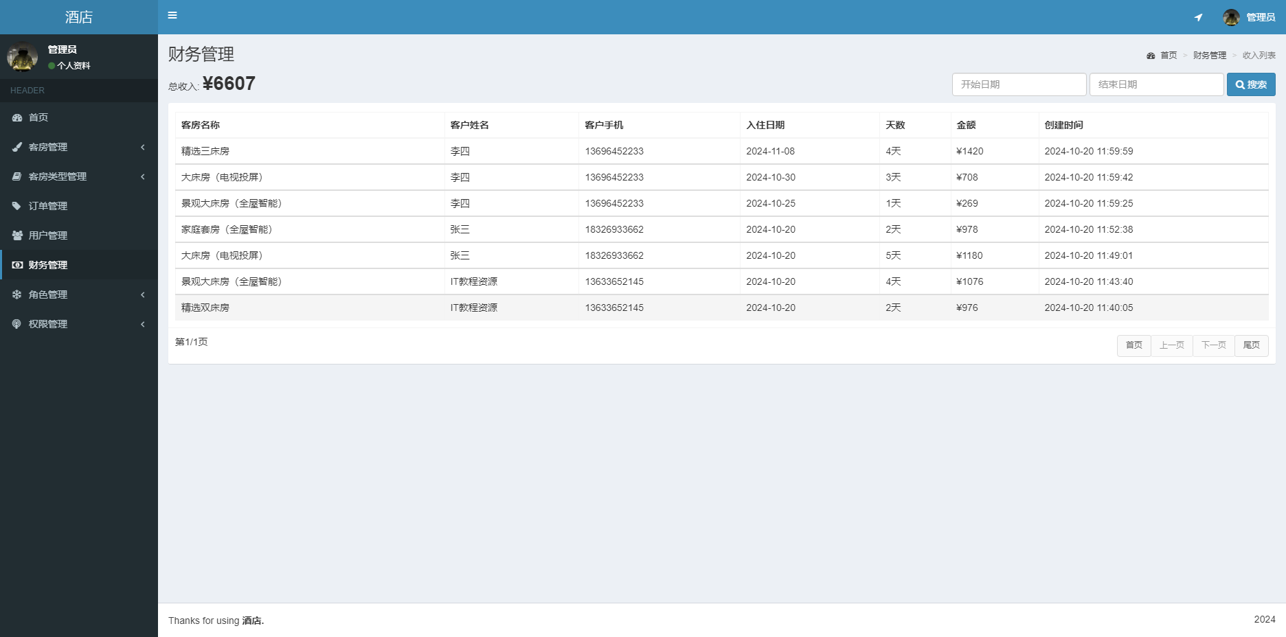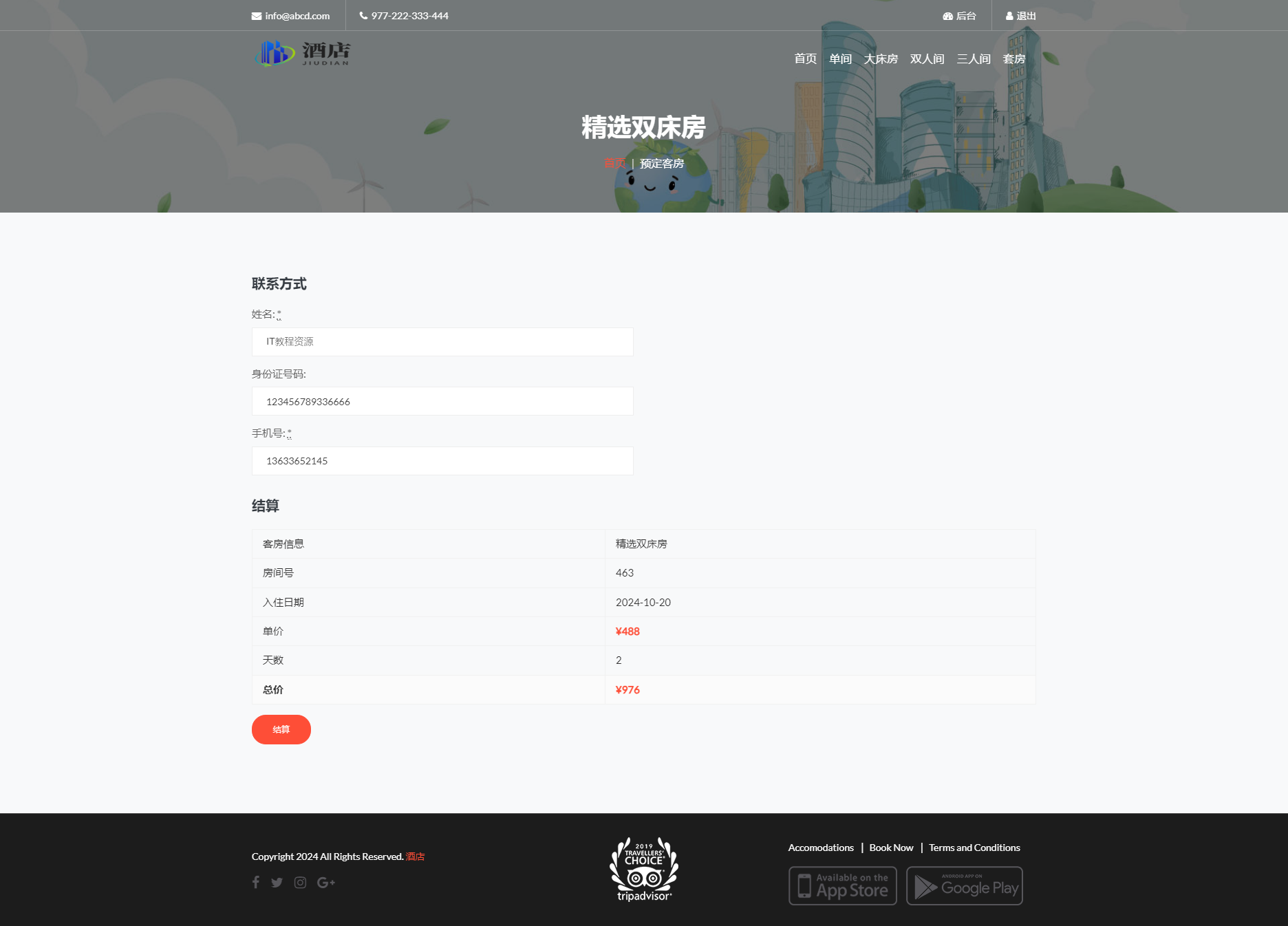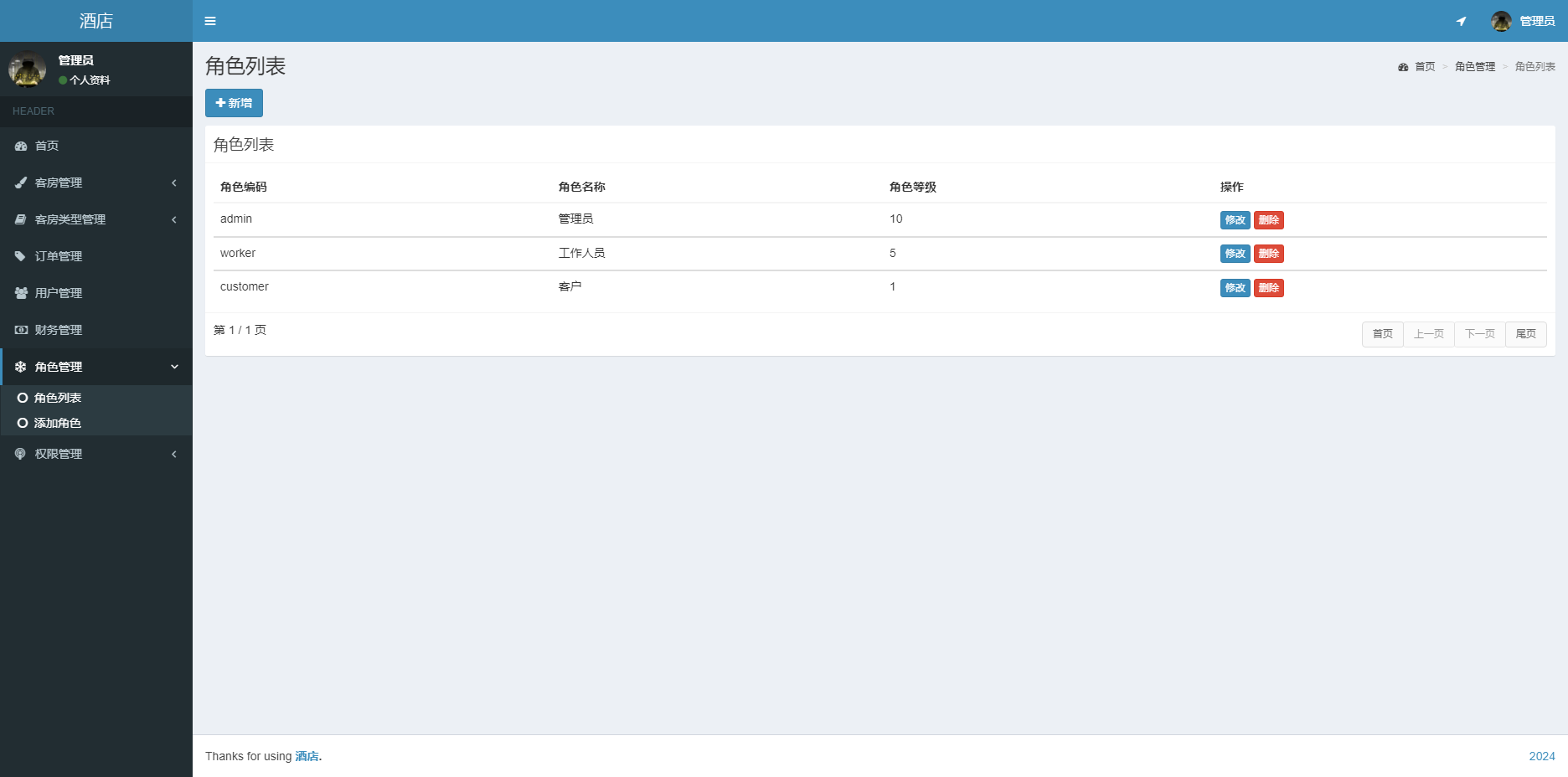 本项目分前台和后台,主要有客户、酒店工作人员、管理员三种角色
