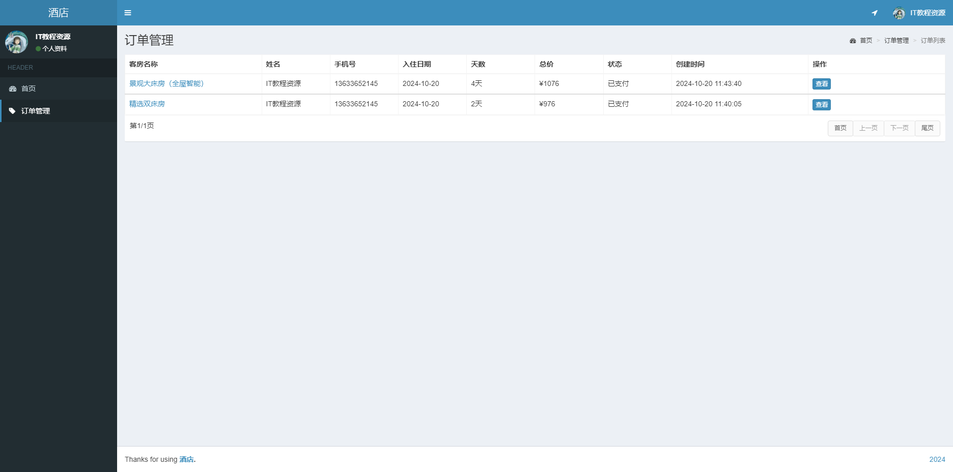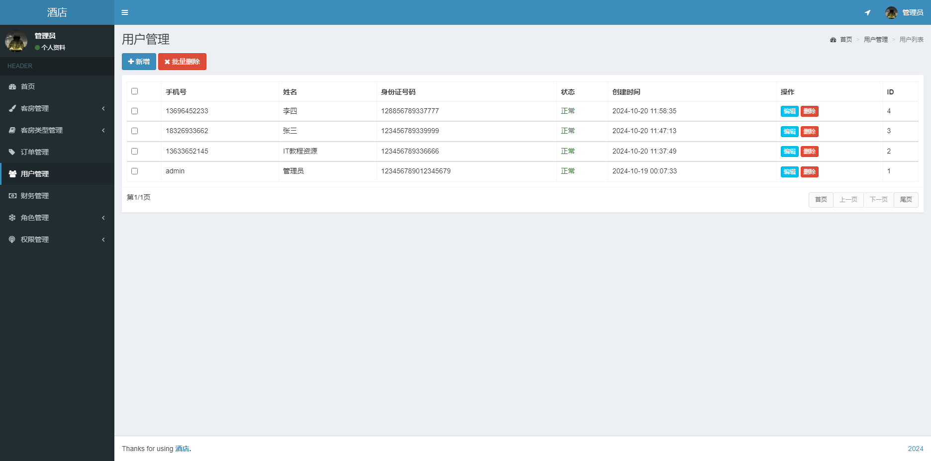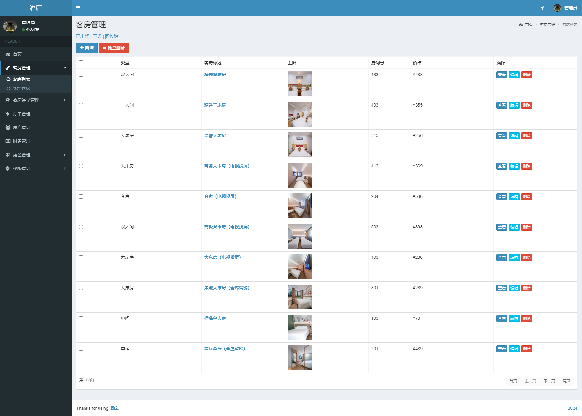 2.客房管理:分页查询、新增客房、修改客房、删除客房、查看详情、批量删除