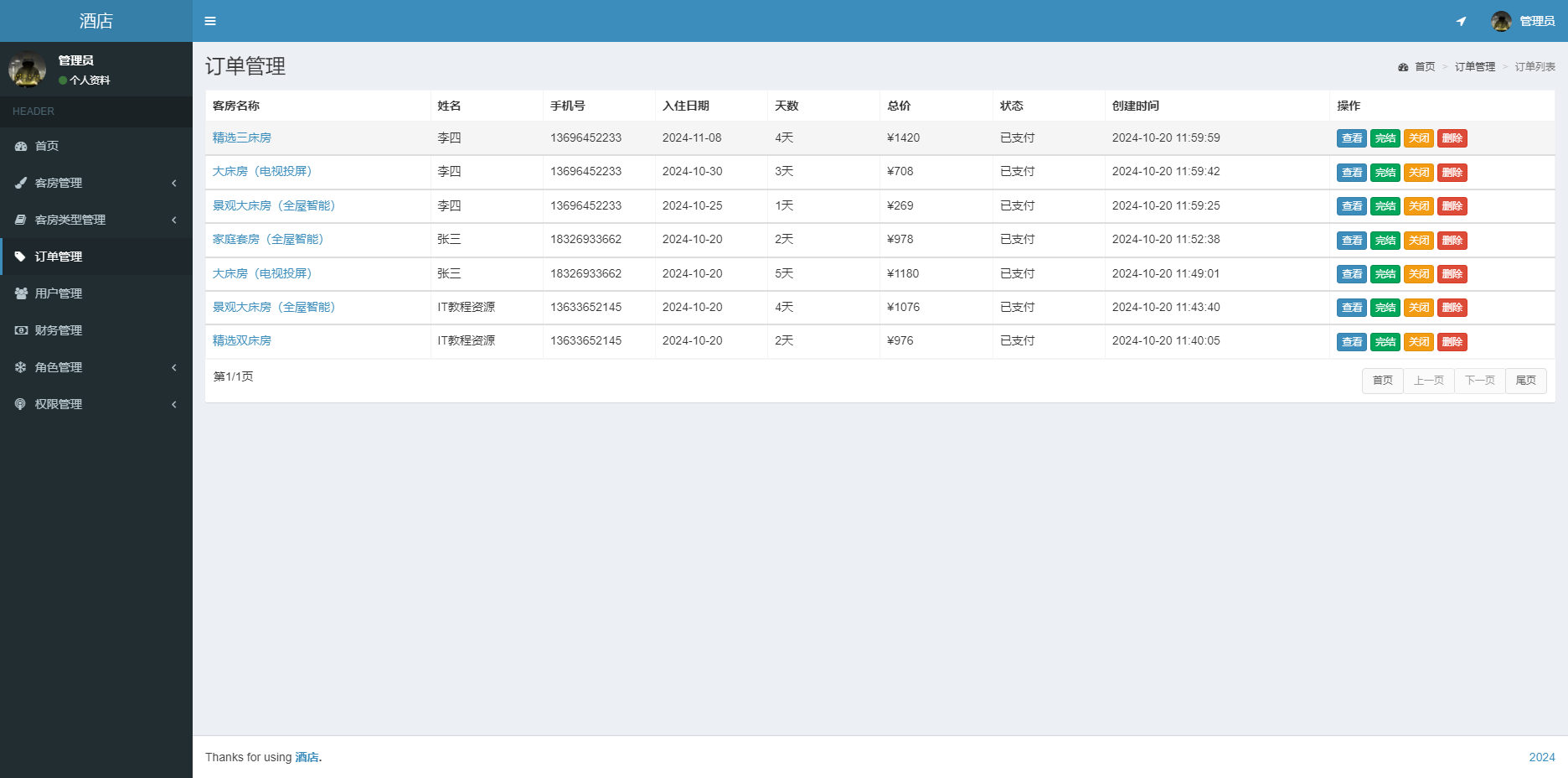 4.订单管理:分页查询、查看详情、完结、关闭、删除