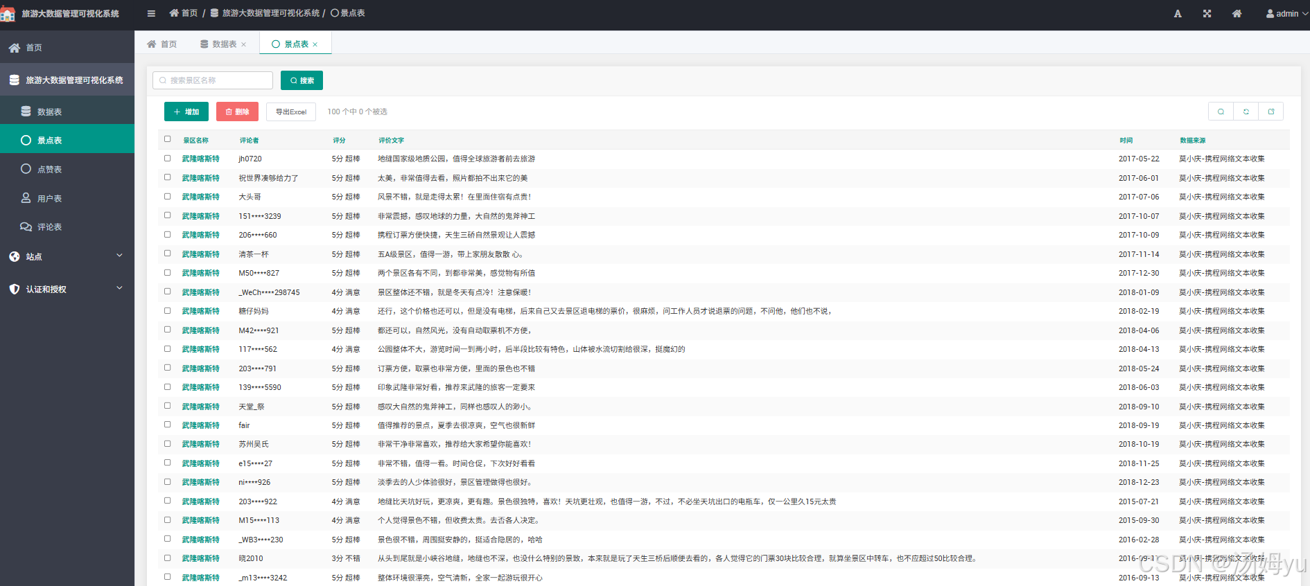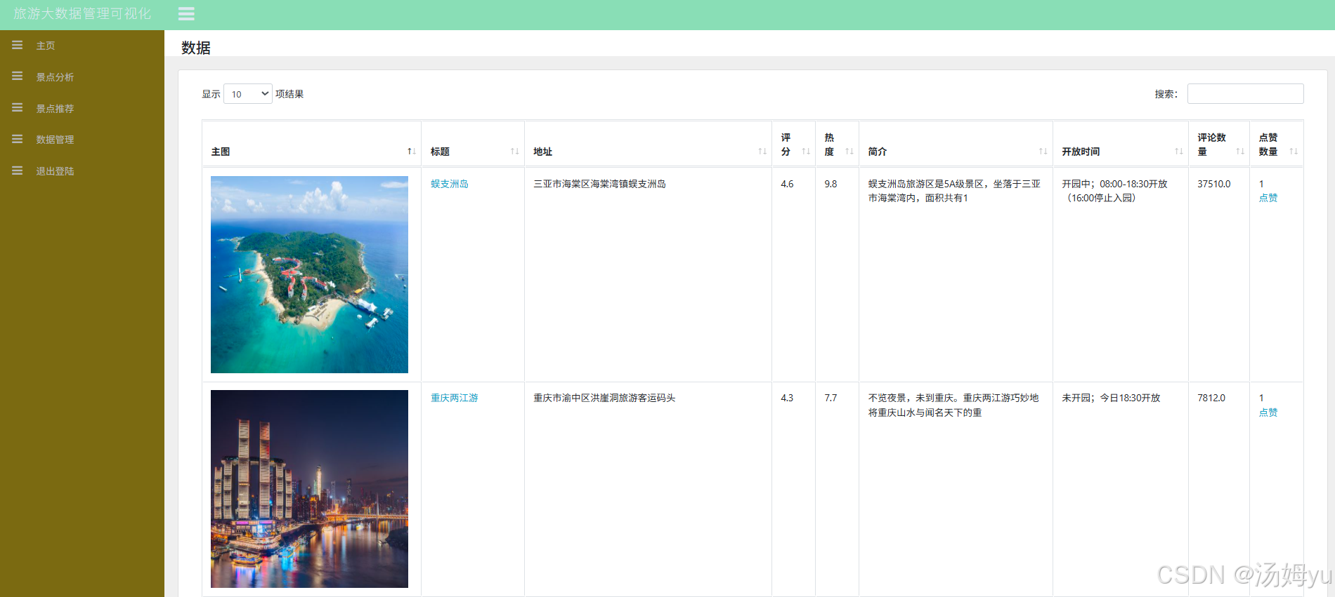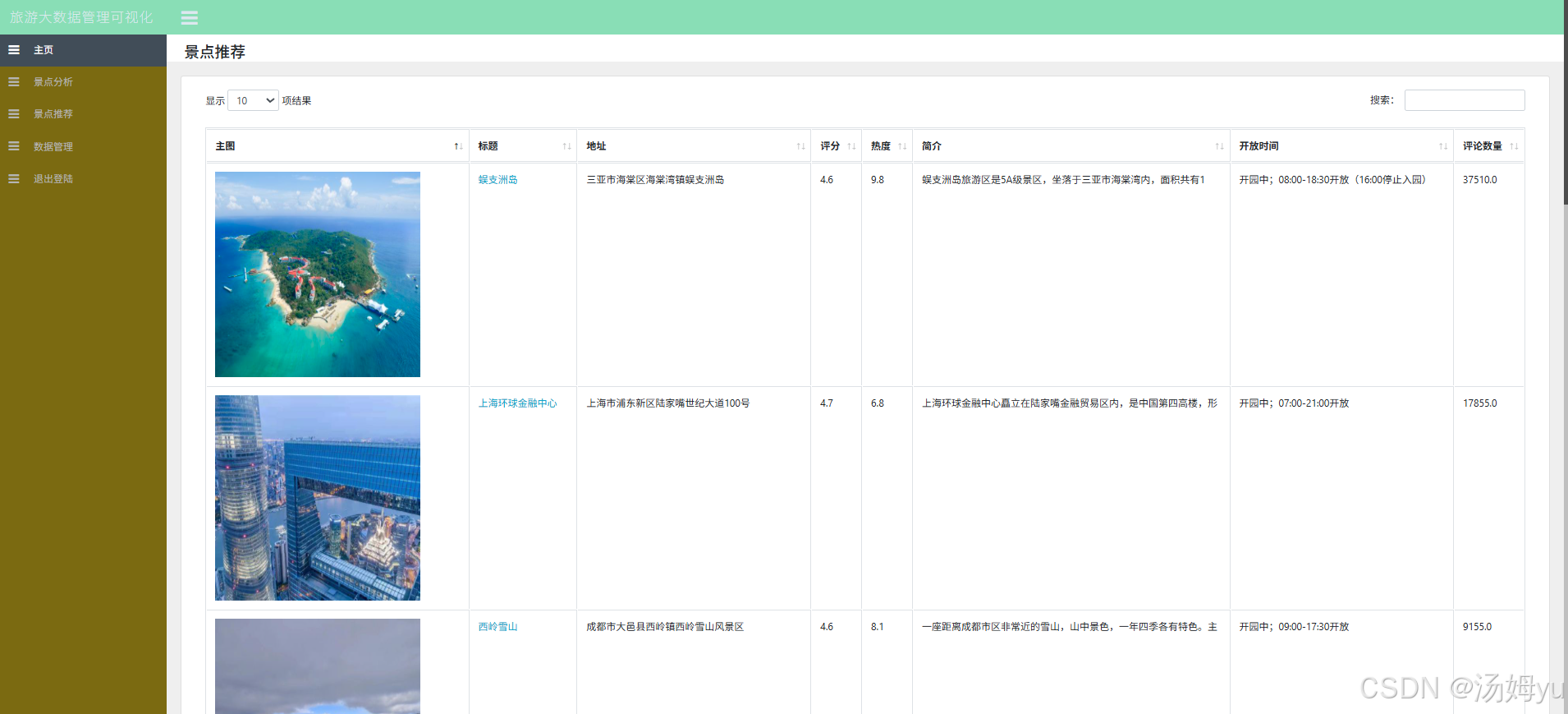 国外在基于Python大数据的旅游可视化及推荐系统领域的研究同样活跃。许多知名的旅游网站和应用都采用了这些技术来提升用户体验和服务质量。例如,TripAdvisor、Expedia等旅游网站利用Python爬虫技术从各大旅游数据源提供商处抓取景点数据,并结合Django框架和可视化技术,为消费者提供了全面、准确的景点信息服务和个性化的推荐。此外,国外的一些学者和开发者也在积极探索新的景点数据可视化技术和应用模式,利用大数据分析、人工智能等技术对景点数据进行更深入的分析和挖掘,为消费者提供更加精准和个性化的服务。