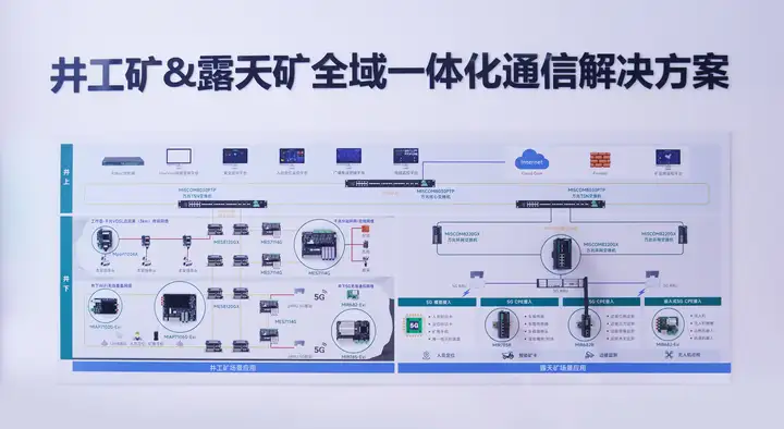 本次展会中,迈威通信提出了“深拓多元安全互联,智启矿山高效未来”的理念,并推出一套覆盖井工矿与露天矿的全域一体化通信解决方案。它不只是多种技术的叠加,更像为矿山部署了一套高度协同的“智慧神经网络”。
