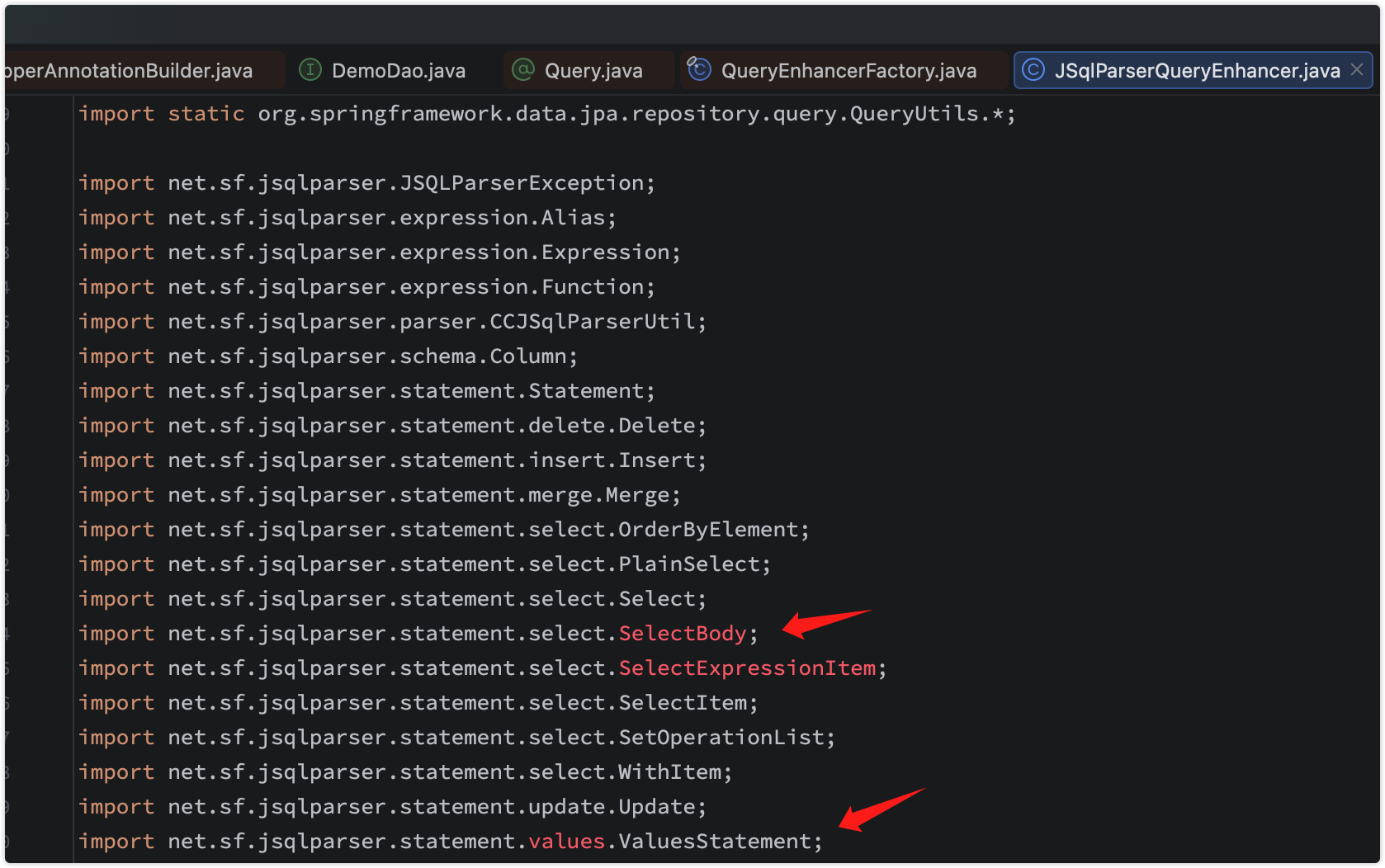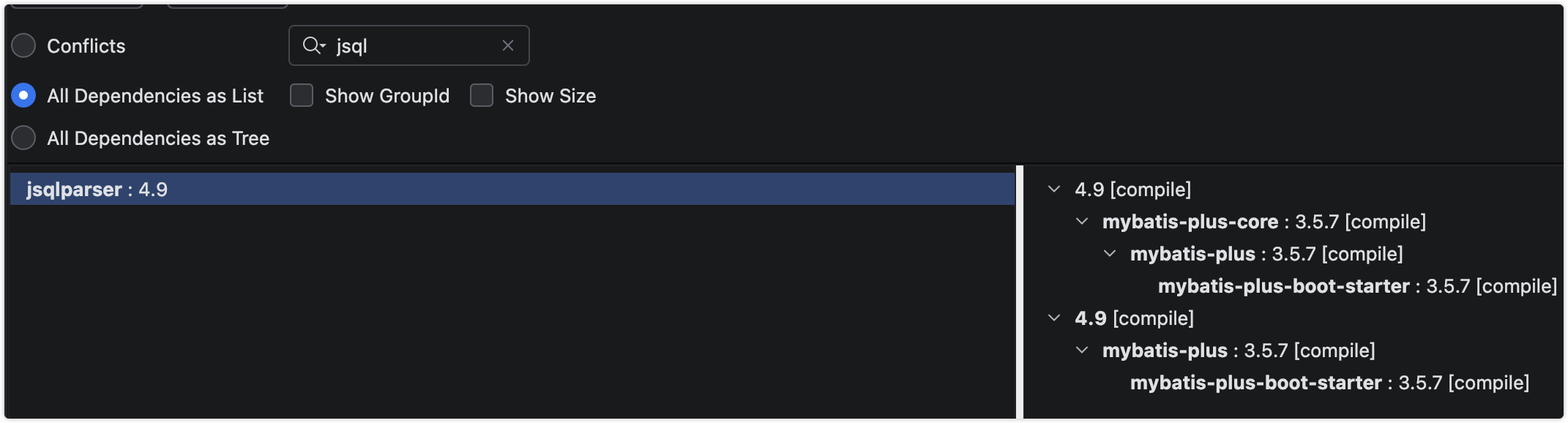 - 使用低版本的 jsqlparser,比如 3.1,既不能使用 mybatis-plus 依赖的高版本,也不能使用 spring-data-jpa 的 4.5 版本,不兼容