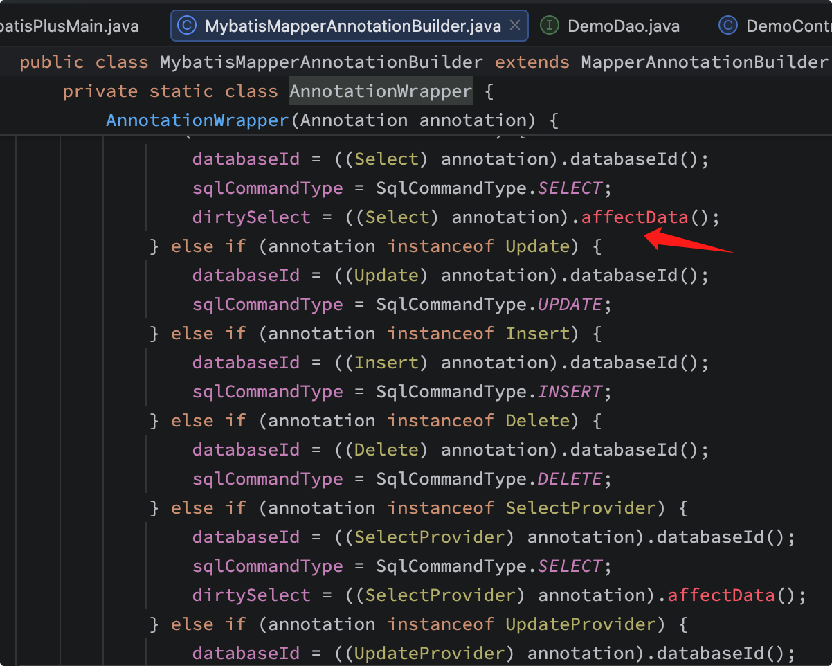 ***************************Description:An attempt was made to call a method that does not exist. The attempt was made from the following location:com.baomidou.mybatisplus.core.MybatisMapperAnnotationBuilder$AnnotationWrapper.<init>(MybatisMapperAnnotationBuilder.java:653)The following method did not exist:org.apache.ibatis.annotations.Select.affectData()ZThe calling method's class, com.baomidou.mybatisplus.core.MybatisMapperAnnotationBuilder$AnnotationWrapper, was loaded from the following location:jar:file:/Users/huahua/.m2/repository/com/baomidou/mybatis-plus-core/3.5.7/mybatis-plus-core-3.5.7.jar!/com/baomidou/mybatisplus/core/MybatisMapperAnnotationBuilder$AnnotationWrapper.classThe called method's class, org.apache.ibatis.annotations.Select, is available from the following locations:jar:file:/Users/huahua/.m2/repository/org/mybatis/mybatis/3.5.7/mybatis-3.5.7.jar!/org/apache/ibatis/annotations/Select.classThe called method's class hierarchy was loaded from the following locations:org.apache.ibatis.annotations.Select: file:/Users/huahua/.m2/repository/org/mybatis/mybatis/3.5.7/mybatis-3.5.7.jarAction:Correct the classpath of your application so that it contains compatible versions of the classes com.baomidou.mybatisplus.core.MybatisMapperAnnotationBuilder$AnnotationWrapper and org.apache.ibatis.annotations.Select