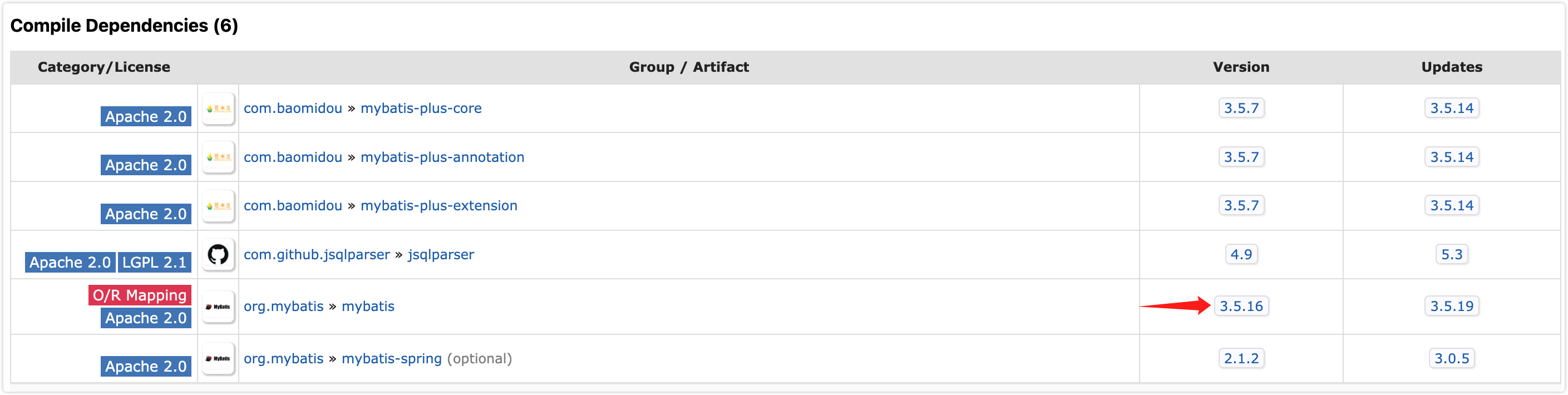 mybatis-plus 3.5.7 依赖 mybatis3.5.16