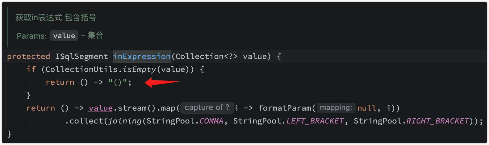 }@RequestMapping("/user")public List<User> listUser(String name){QueryWrapper<User> queryWrapper = new QueryWrapper<>();queryWrapper.in("name", Collections.emptySet());return demoDao.selectUser(queryWrapper);}