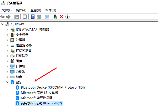 在列表中查看是否有“蓝牙”或“Bluetooth”分类;