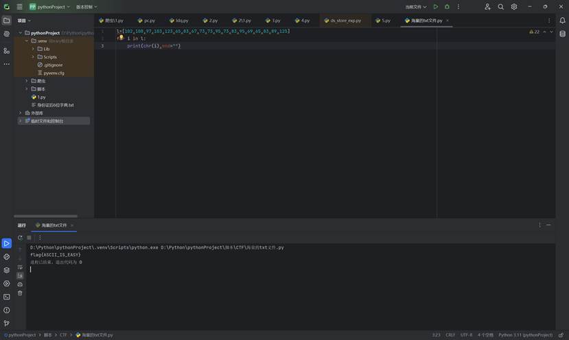 for i in l:print(chr(i),end="")flag{ASCII_IS_EASY}