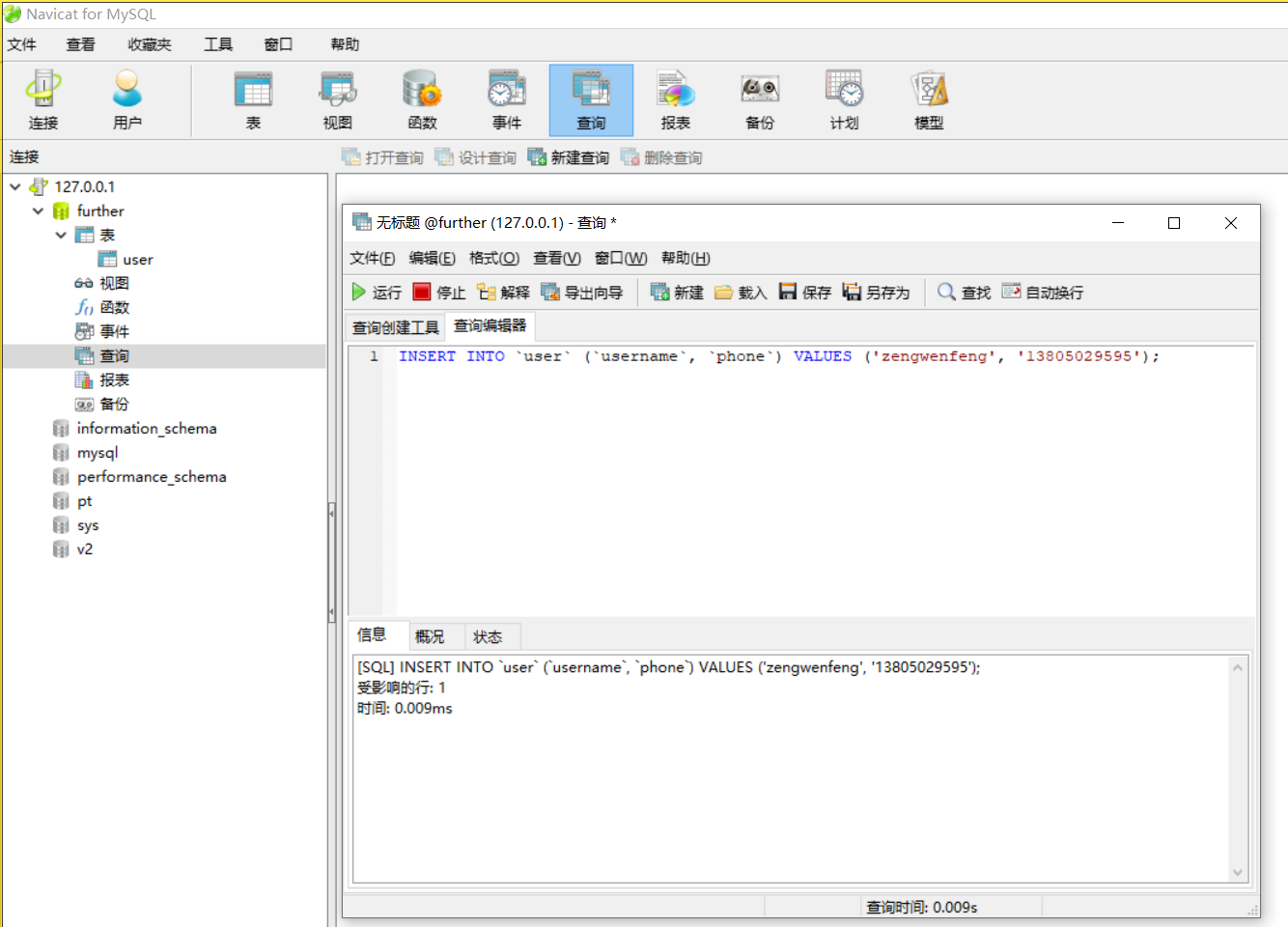 INSERT INTO `user` (`username`, `phone`) VALUES ('zengwenfeng', '13805029595');