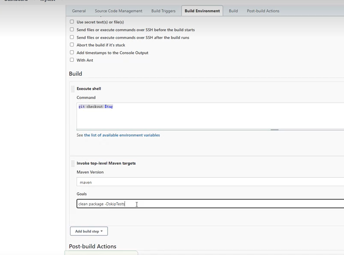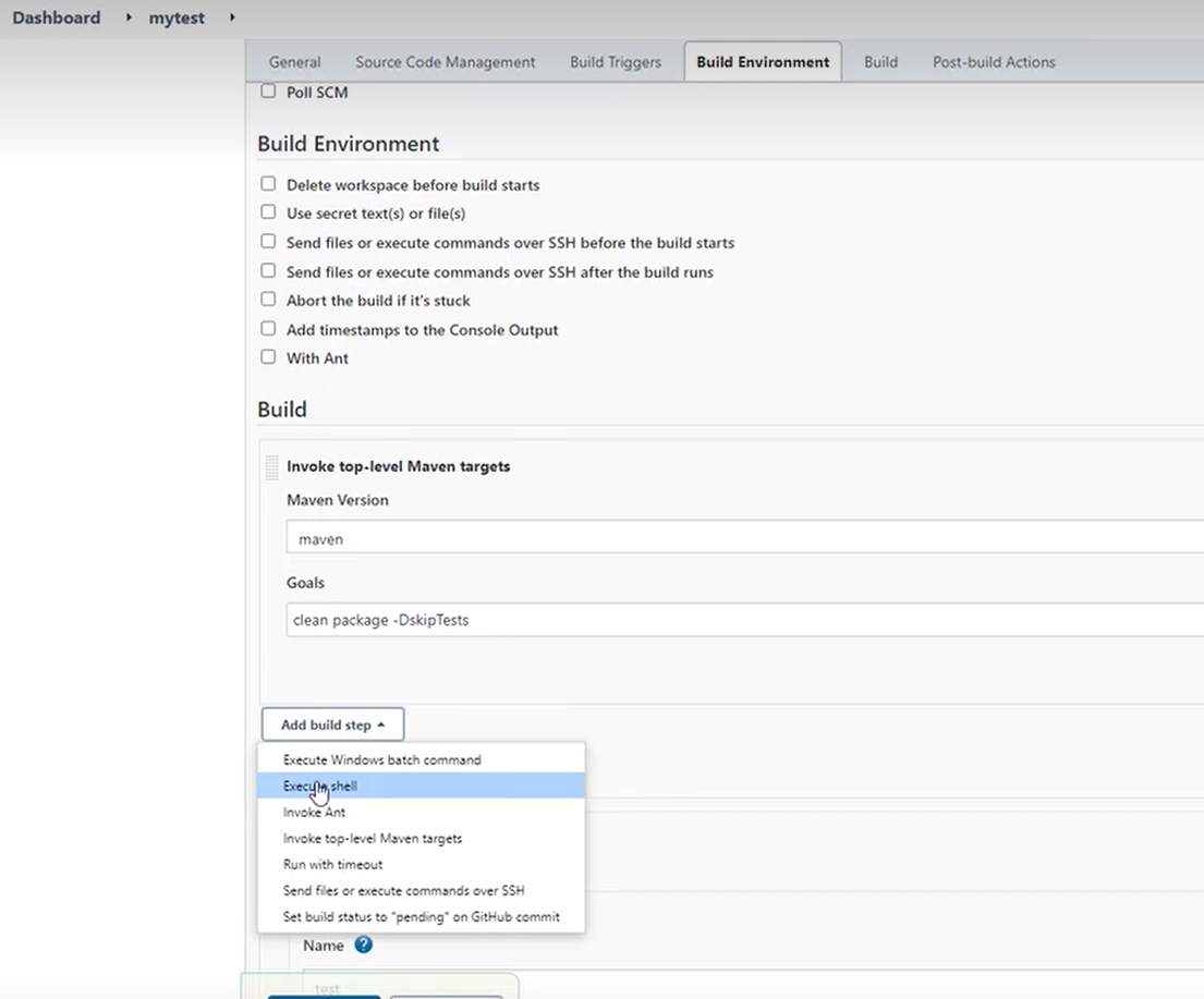 注意,需要将Execute shell 放到 "Invoke top-level Maven targets"前面
