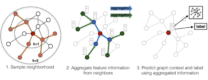 AGGREGATE (聚合): 节点 将来自邻居 和 的所有信息“收集并组合起来” 。这个聚合函数必须是“排列不变”的(即邻居的顺序不重要),通常采用简单的