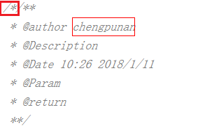 ** @Author chengpunan* @Description //TODO $end$* @Date $time$ $date$* @Param $param$* @return $return$**/如果使用/*生成的模板注释将会是如下效果:所以我们要去掉最前面的/*