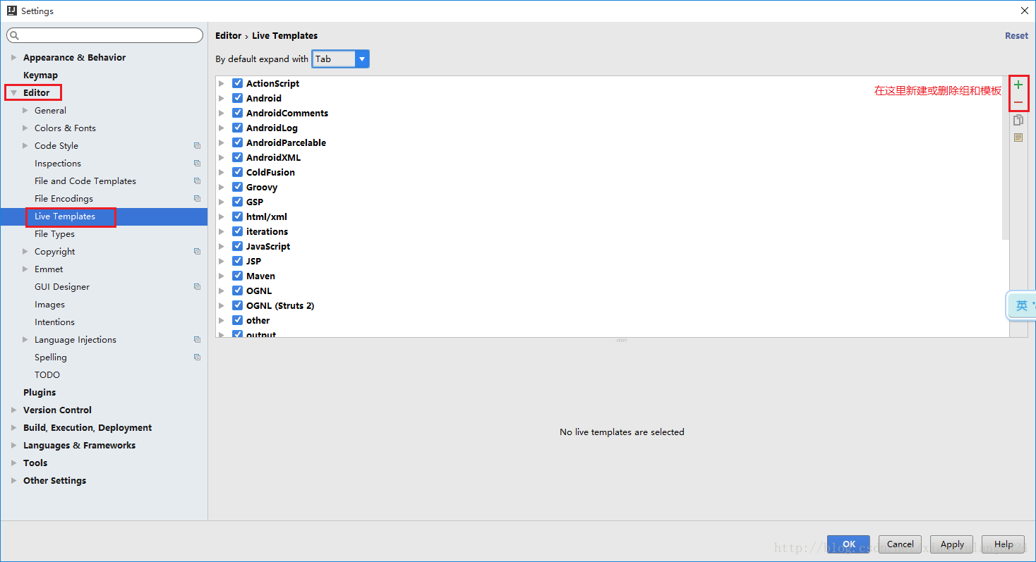 点击模板页面最下方的警告,来设置将模板应用于那些场景,一般选择EveryWhere-->Java即可