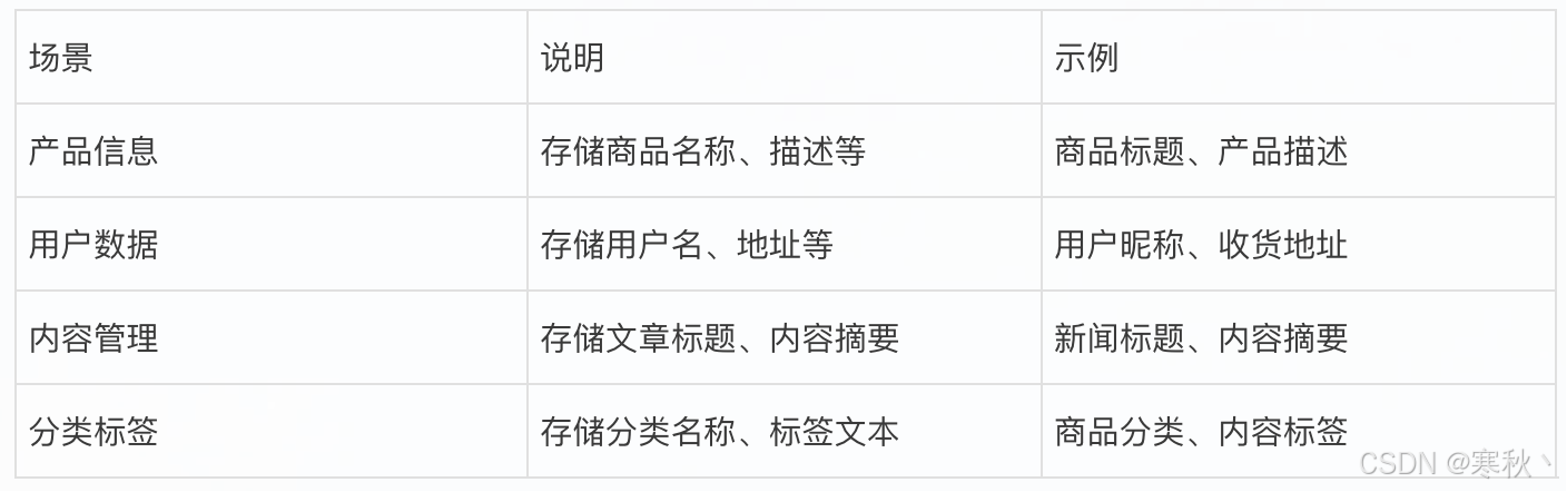商品数据 | FLOAT/DOUBLE | 价格、评分 |