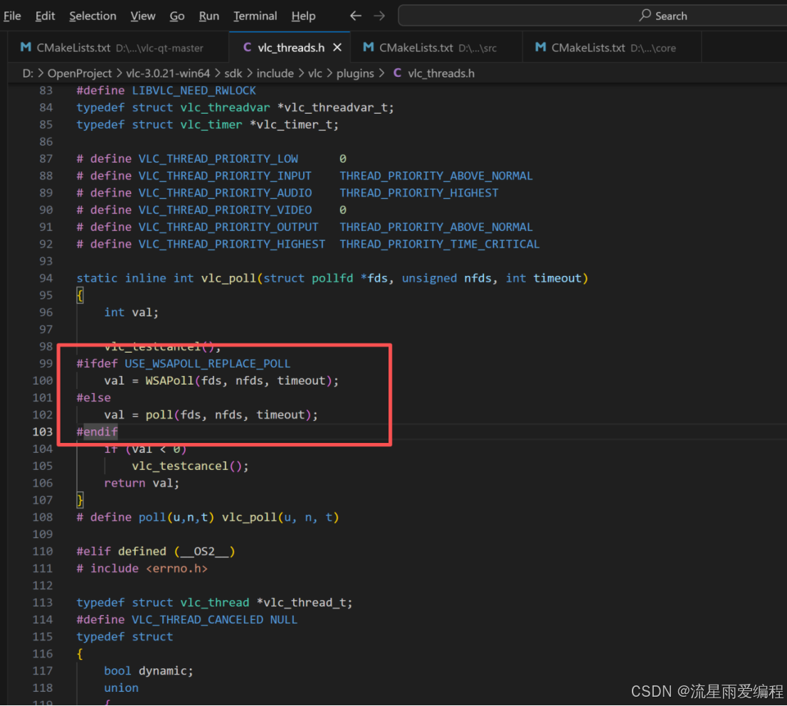 代码修改:D:\OpenProject\vlc-3.0.21-win64\sdk\include\vlc\plugins\vlc_threads.h