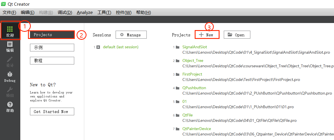 1.1 Qt Creator 启动与初始界面
