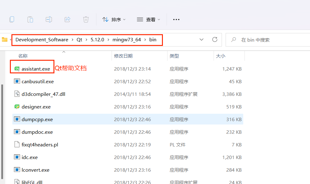 独立 Qt 助手(Assistant):进入 Qt 安装目录的