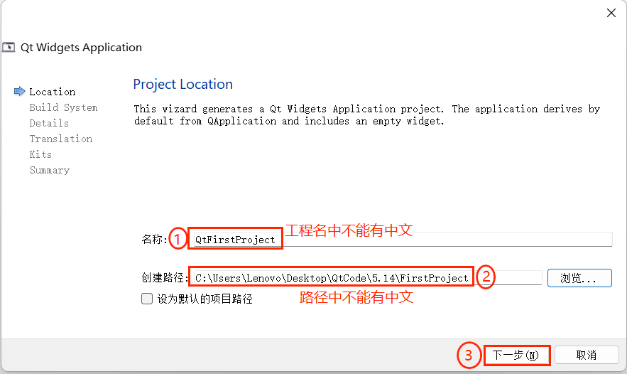 步骤 2:设置项目名称与路径