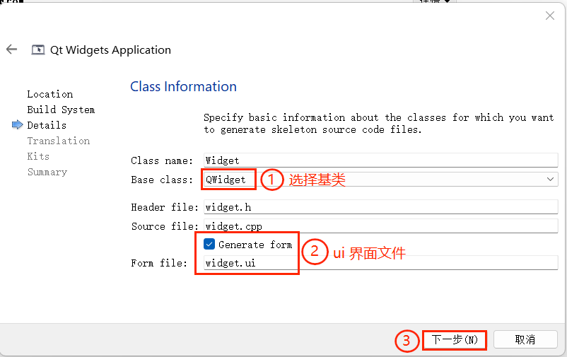 当项目构建时,uic 工具会解析.ui文件,生成对应的 C++ 头文件(如ui_widget.h),该头文件包含Ui::Widget类的实现,其中setupUi函数会根据 XML 节点的信息创建控件、设置属性并关联信号与槽。