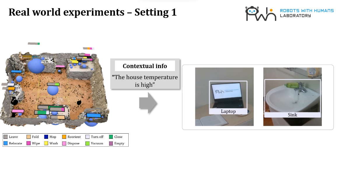 TASMap能够识别指定环境中所有潜在任务。然而,由于资源有限,同时执行所有任务并不现实。我们开发了基于情境和空间信息的任务推荐方法,从而无需使用语言指令。