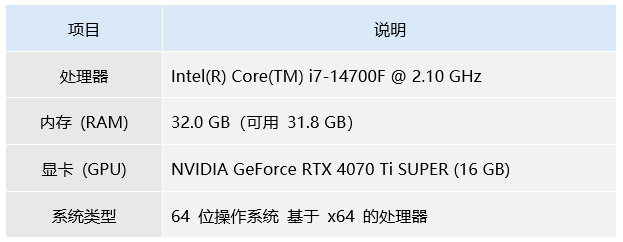 该系统硬件配置如下,如果您的电脑配置低于下述规格,模型训练时间及结果可能会与本系统的训练日志存在差异,请注意。