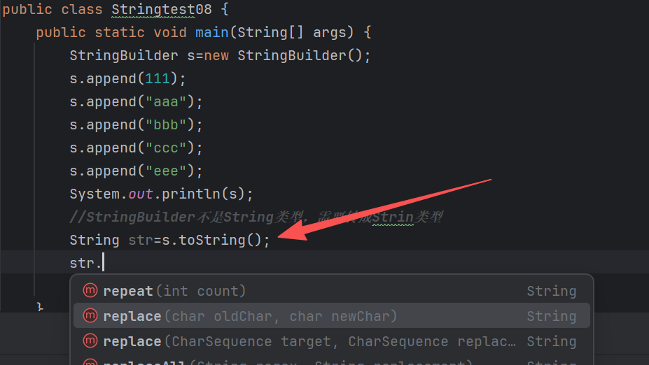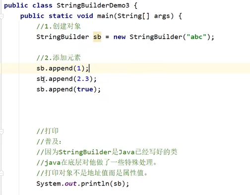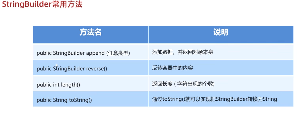 }StringBuilder可以看成是一个容器,并不是字符串类型,里面的内容是可以改变的
