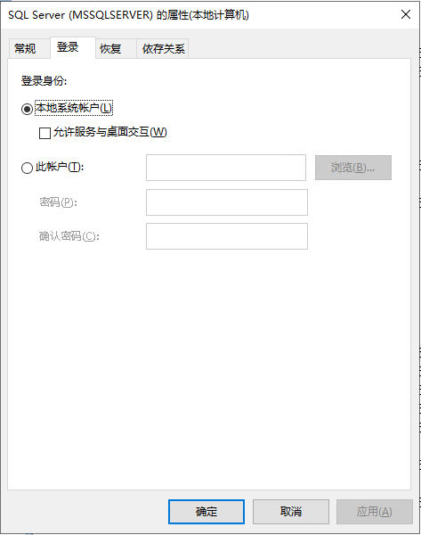 如果以前是正常的,现在不通,需要检查服务的登录账号是不是设置了Windows的账户(对应下图的“此帐户”)。
