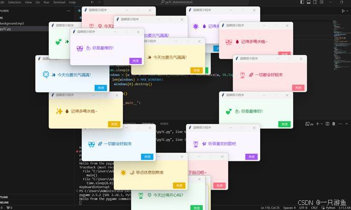 最近抖音上这种弹窗很火,简单的来说这是一个python 实现激励弹窗的代码。