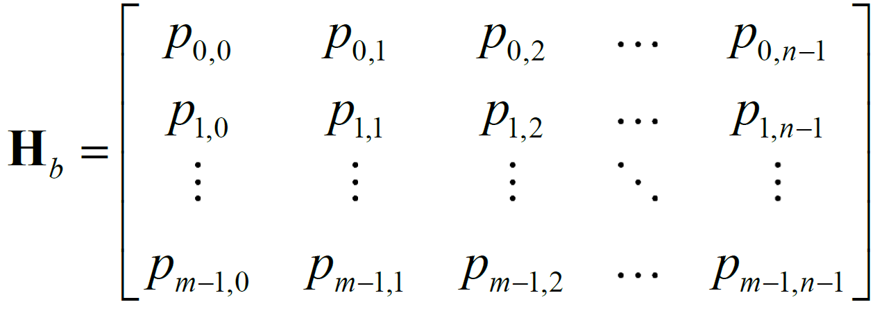 。其中校验矩阵H 的行数为m,列数为n。基矩阵