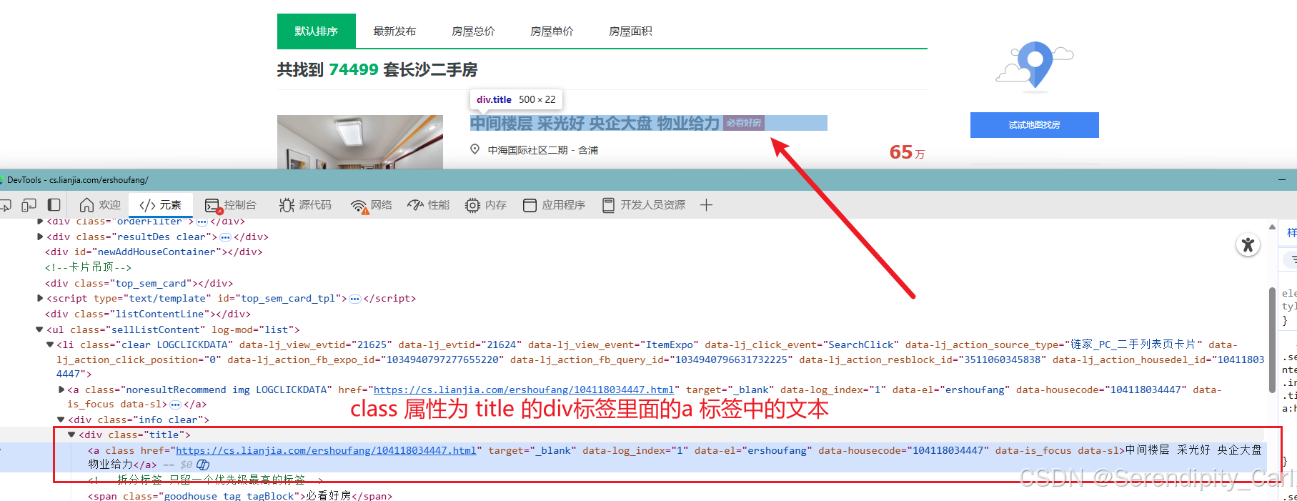 通过分析可得 每个房屋的所有信息都在class属性为sellListContent Ul标签中的li标签中