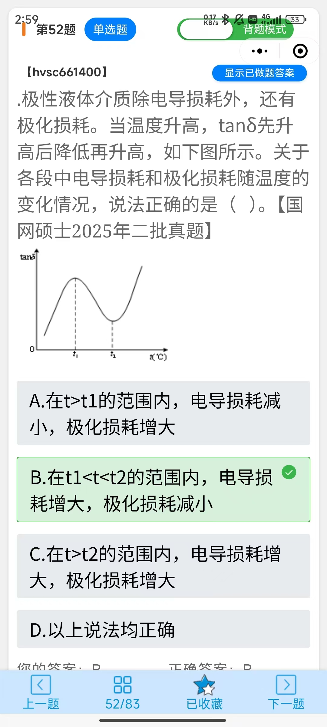 在低温时,极化损耗和电导损耗都较小;随着温度的升高,液体的粘度减小,偶极子转向极化增强,电导损耗也在增大,所以总的tanδ亦上升,并在t=t1时达到极大值;