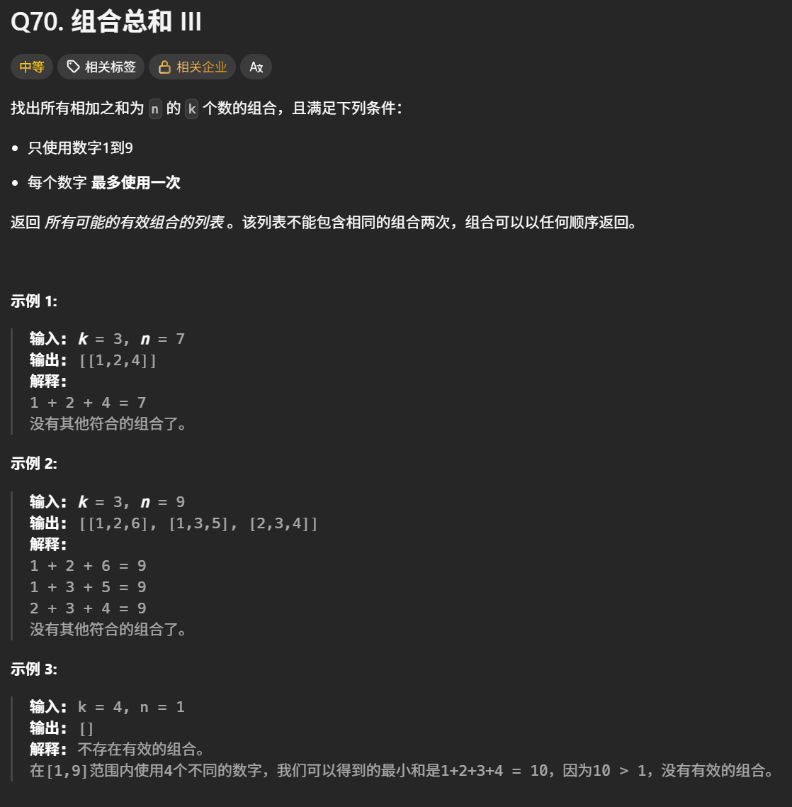 代码随想录 Q70.组合总和 Ⅲ